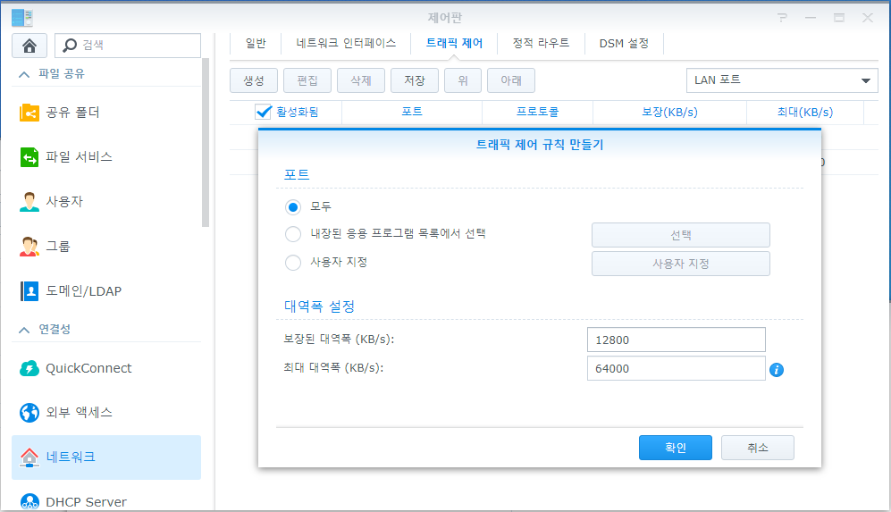Synology NAS 장비의 데이터 복사시 네트워크 대역폭을 다 써버리면 다른 컴퓨터에서 인터넷 사용시 엄청 느려지게 됩니다.