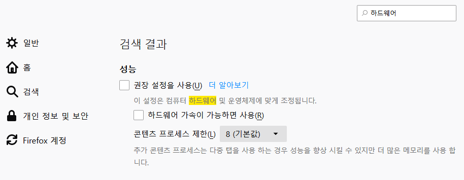 파이어폭스는 설정에서 검색해서 찾으세요~