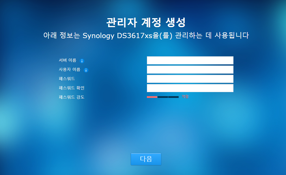 이제 관리자 계정을 만들고 나스를 꾸미시면 됩니다.