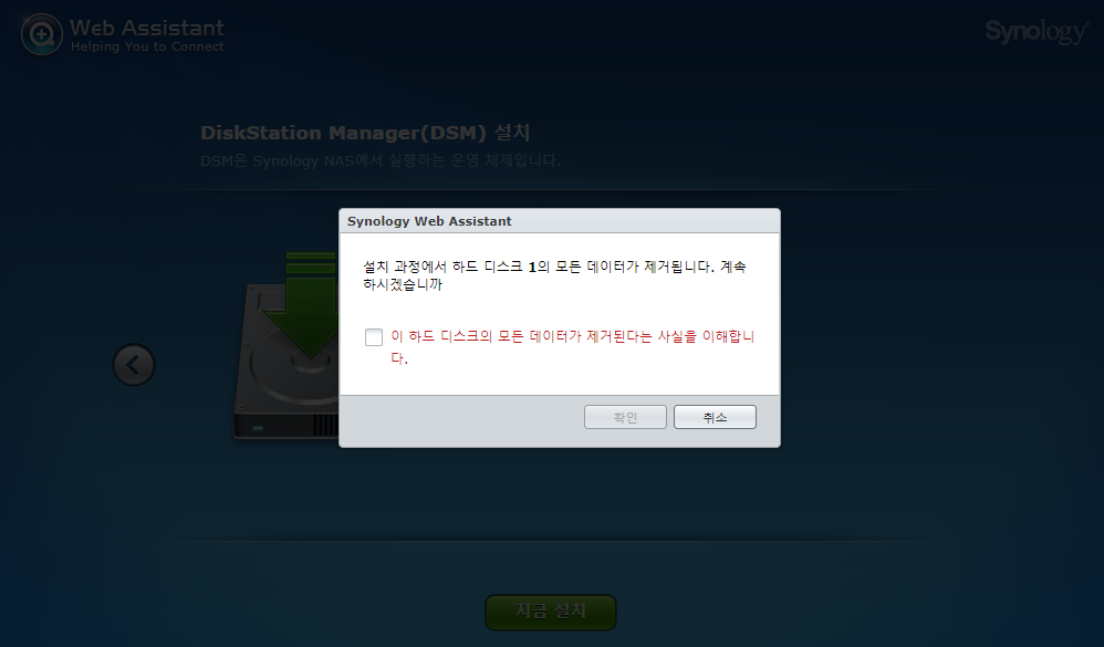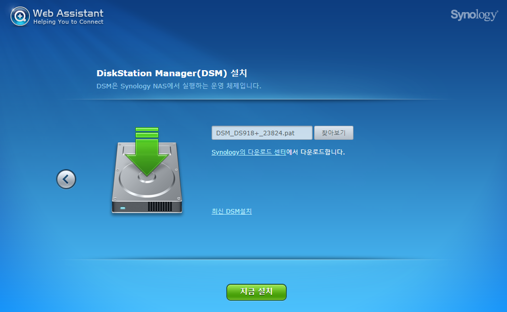 2번 과정을 생략한 경우, 그냥 최신 DSM설치로 지금 설치를 누르면 자동으로 설치가 되지만 먹통이 되더군요~