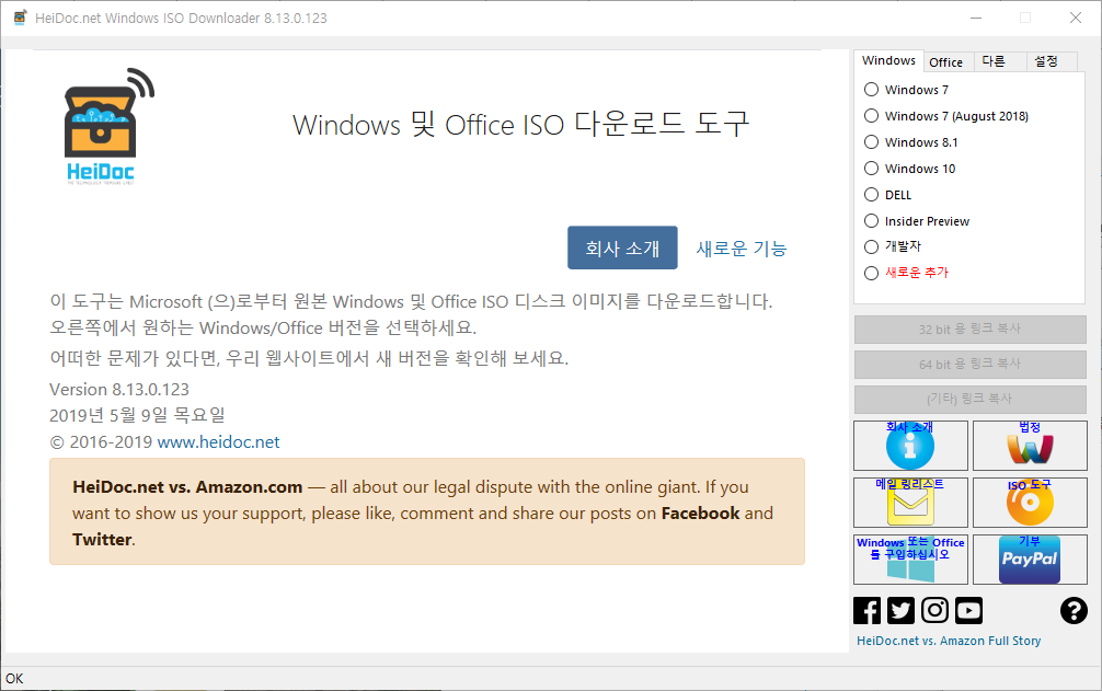 윈도우 7, 8.1, 10 iso 이미지 및 오피스 이미지를 다운로드 받을 수 있는 프로그램입니다.
