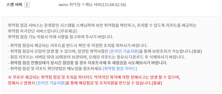 iwinv 서버관리에 취약점 점검이 새로 생겼네요~