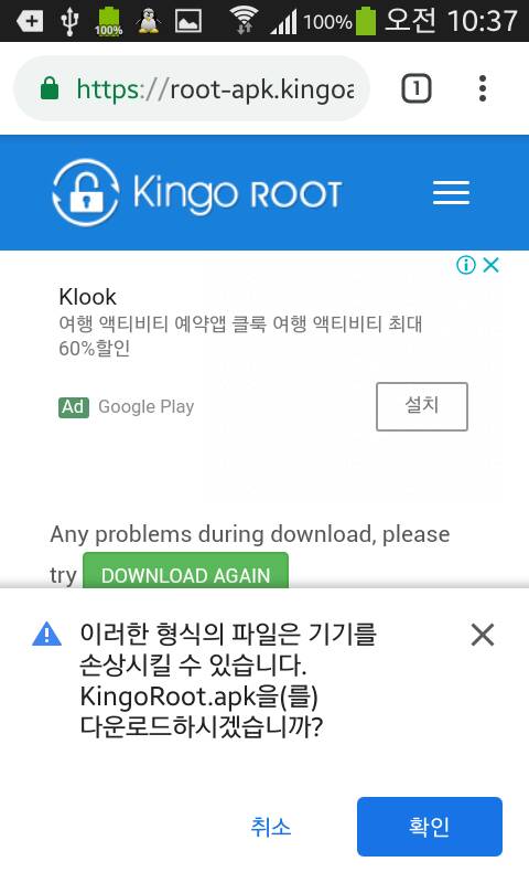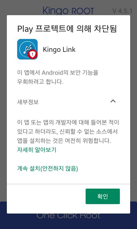조금 지나면 폰에서 자동으로 Kingo Link 앱을 설치 시도가 됩니다.
