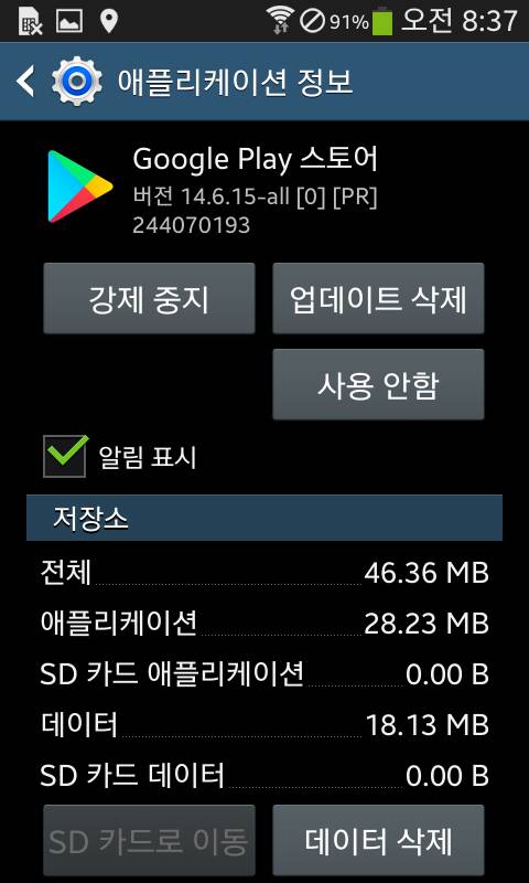 다시 설치하려면 애플리케이션 관리에서 "Google Play 스토어" 앱의 데이터를 삭제하고 다시 진행하면 됩니다.