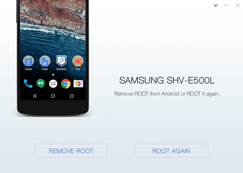 루팅이 된 상태에서 PC 의 KingoROOT 프로그램을 다시 실행하면 REMOVE ROOT 와 ROOT AGAIN 메뉴가 나타납니다.