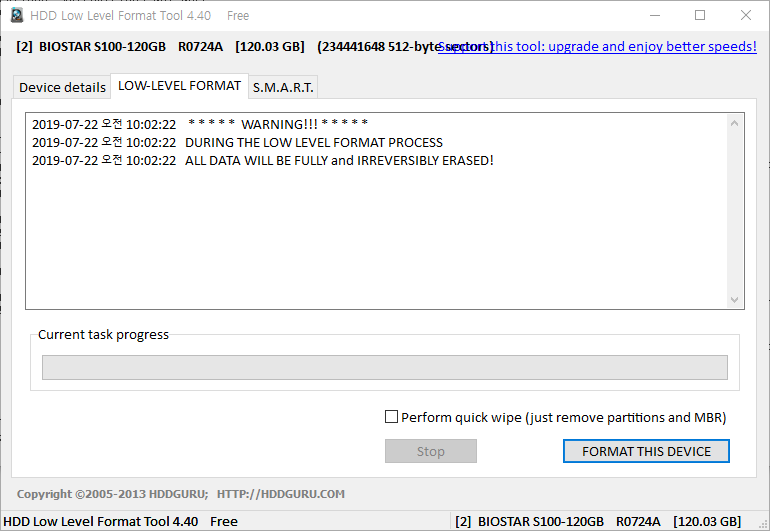 HDDguru 에서 만든 로우레벨 포맷 유틸로 포맷해도 안되는군요~